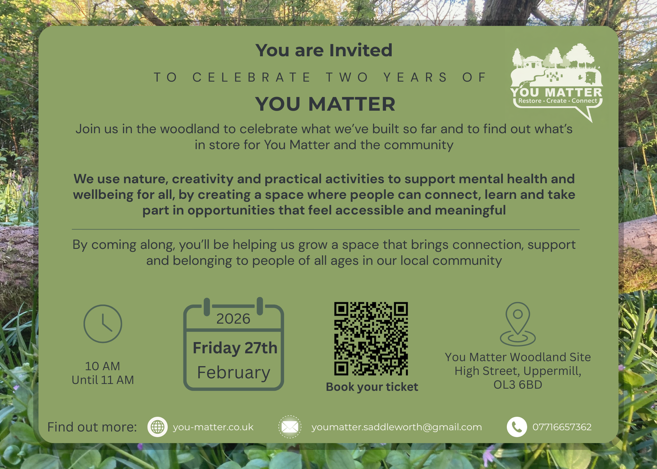 You Matter Saddleworth is shaped by the people, projects and moments that happen in our woodland and community.
